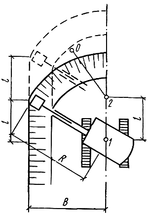 Средний уголок поворота машины определяется между направлением стрелы при прохождении ее через центр тяжести объема грунта, разрабатываемого с одной стороны (точка 0), и положением стрелы в момент выгрузки ковша.
