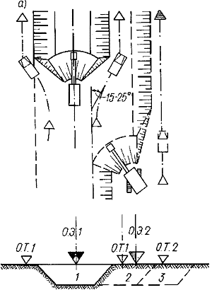 а - при проходке пионерной траншеи и последующих боковых проходках: