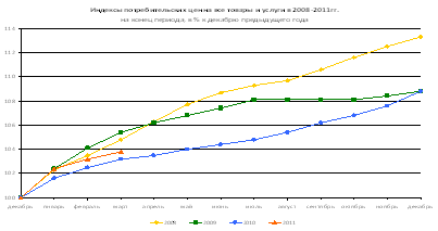 Далее обратимся к данным статистики и проанализируем развитие российской экономики, используя показатели инфляции за 2008 – 2011 гг.