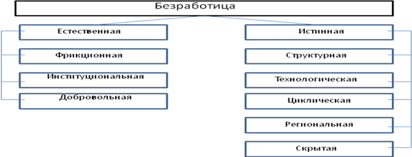 Безработица имеет две основные формы: естественную и истинную. Структуру безработицы можно представить следующим образом (рисунок 1).