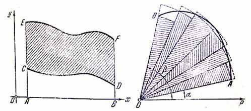 Пусть теперь дан секторAOB (чертёж 3), ограниченной кривой AB и двумя радиусами-векторами AO и OB (каждый из которых может свестись к точке). При этом кривая ABзадаётся полярным уравнением