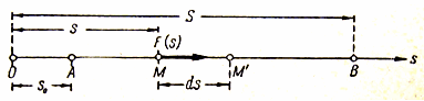 Пусть точка M движется по прямой (этим случаем мы ограничимся для простоты), причём на перемещении s на неё вдоль той же прямой действует постоянная сила F. Из элементов механики известно, что тогда работа W этой силы выразится произведением