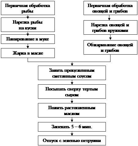 Время приготовления жареной рыбы 10 минут, хранят и реализуют в течение 12 – ти часов при температуре от 2 до 6 градусов