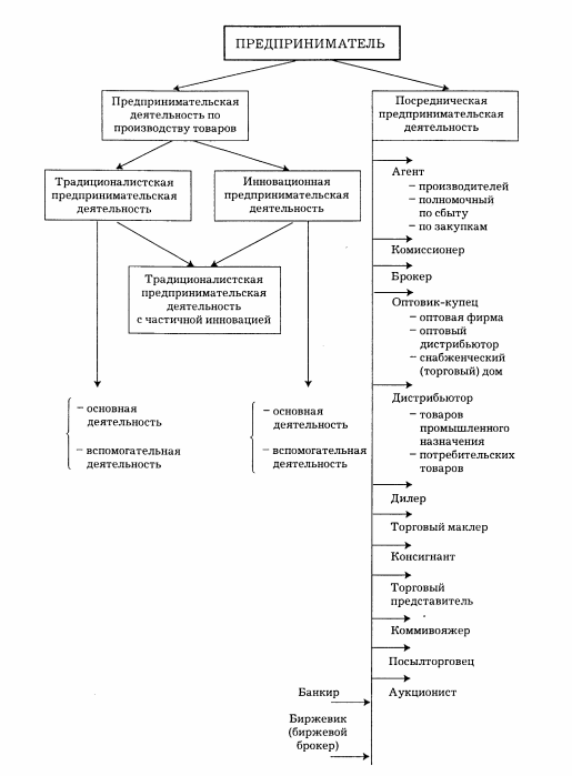 В тоже время каждый из названных видов предпринимательства распределяется на некоторое число подвидов.
