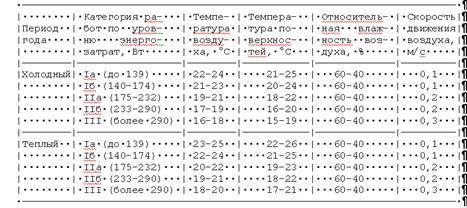 При этом абсолютные значения температуры воздуха не должны выходить за пределы величин, указанных в табл.2 для отдельных категорий работ.