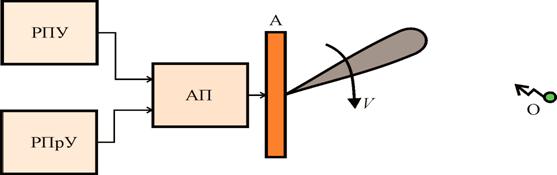 Упрощенная структура РЛС представлена на рис. 1, где использованы следующие обозначения: РПУ – радиопередающее устройство; РПрУ – радиоприемное устройство; АП – антенный переключатель; s0(t) – зондирующий сигнал; s(t) – отраженный сигнал; А – антенна; О – обнаруживаемый объект; V – скорость сканирования антенны. Облучение пространства производится периодическим зондирующим сигналом.