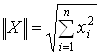 , i – номер измерения в выборке X. Если представим n-мерное пространство, в котором на каждой оси координат отложим соответствующие по номеру измерения, то вся выборка будет соответствовать точке этого пространства или вектору, конец которого лежит в этой точке. Длина вектора в данном пространстве может быть представлена так: