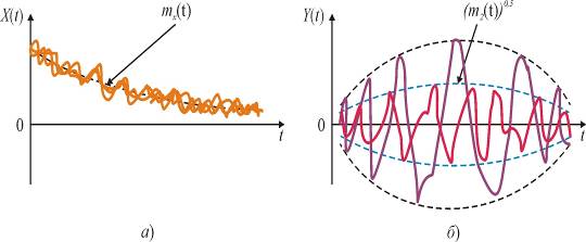В случае стационарных СП моменты не зависят от времени, для нестационарных могут быть функциями времени (в зависимости от типа не-стационарности), что поясняется рис. 13.