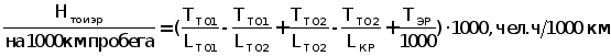 НТО И ЭР - суммарная удельная трудоемкость ТО и ЭР, чел.ч/1000км
