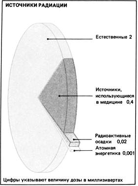 Как это ни парадоксально, но на самом деле проблема радиационного облучения намного завышена, а где-то доходит и до истерии. Чернобыльская и другие подобные аварии породили особое психосоциальное явление – радиофобию. Самым классическим примером этого явления могут служить такие деятели, как организация «Гринпис» (Greenpeace), в своей деятельности доходящие до экстремизма. При более серьезном и детальном изучении проблемы оказывается, что все намного сложнее, чем просто отрицание или восхваление. По результатам деятельности действительно серьезных организаций, как к примеру НКДАР, было выяснено, что основную часть облучения население получает от естественных источников радиации, и большинство из них таковы, что избежать облучение совершенно невозможно. На протяжении всей истории существования Земли разные виды излучения падают на поверхность Земли из космоса и поступают от радиоактивных веществ, находящихся в земной коре. Причем радиоактивное распределение крайне неравномерно в пространстве. Применение некоторых строительных материалов, использование газа для приготовления пищи, открытых угольных жаровен, герметизация помещений полеты на самолетах, медицинское обслуживание – все это и многое другое, даже образ жизни, увеличивает уровень облучения за счет естественных источников радиации. Но наиболее весомым из всех естественных источников радиации является невидимый, не имеющий ни вкуса, ни запаха тяжелый газ ( в 7,5 раза тяжелее воздуха) радон. Согласно данным НКДАР ООН, радон вместе со своими дочерними продуктами радиоактивного распада ответственен примерно 3/4 годовой индивидуальной эффективной эквивалентной дозы облучения, получаемой населением от земных источников радиации, и примерно за половину этой дозы от всех естественных источников радиации.
