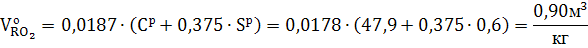 Теоретические объемы продуктов сгорания, получаемые при полном сжигании 1кг топлива с теоретическим количеством воздуха, м3/кг, определяем по формулам (2,2)¸(2,5) (2):