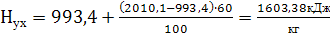 Энтальпию уходящих газов при tyx=160 °C определяем по табл. 2.2 настоящего расчета методом интерполяции.