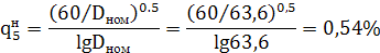 Потеря теплоты q5 от наружного охлаждения через внешние поверхности котла при номинальной производительности котла Dном = 229 т/ч =63,6 кг/с определяем по формуле (3.11) (2):
