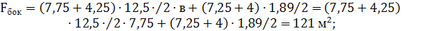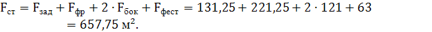 площадь соответственно задней, фронтовой и боковой стены, м2;
