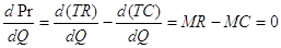 Главным мотивом деятельности любой фирмы на рынке является максимизации получаемой прибыли. Эта задача является приоритетной для каждой фирмы, желающей выжить в условиях конкуренции. Прибыль (Pr), получаемая фирмой, представляет собой разность между валовым доходом (TR) и валовыми издержками (TC):