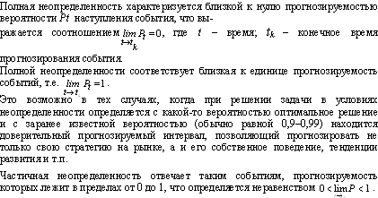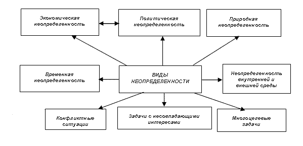Следует отметить, что разница между риском и неопределенностью относится к способу задания информации и определяется наличием (в случае риска) или отсутствием (при неопределенности) вероятностных характеристик неконтролируемых переменных. В отмеченном смысле эти термины употребляются в математической теории исследования операций, где различают задачи принятия решений при риске и соответственно в условиях неопределенности.