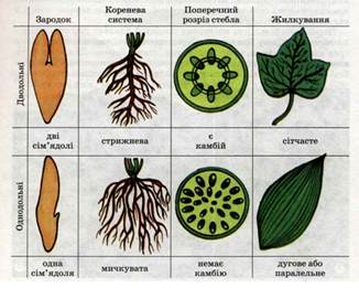 На які класи поділяють квіткові рослини? Усі квіткові рослини поділяють на два класи, які отримали назви Однодольні та Дводольні. Основною ознакою, на якій ґрунтується такий поділ, є кількість видозмінених зародкових листків – сім'ядоль. У зародків представників класу Дводольні їх дві, а в Однодольних – одна (мал. 1). Отже, вже за будовою насінини ми можемо визначити, до якого класу покритонасінних належить та чи та квіткова рослина.