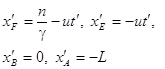 xF=n, xE=0, xB=βct, xA=-n+βct. (1)