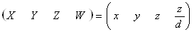 Тепер, поділивши на W (що дорівнює z/d) для зворотнього переходу до трьох вимірів, отримаємо