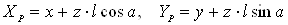 Рис. 5 Косокутна паралельна проекція (Xp, Yp, 0) точки (x, y, z).