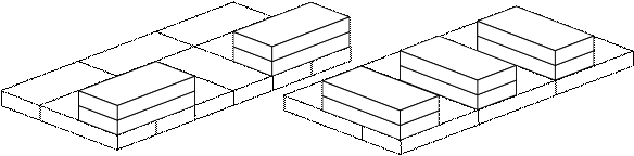 Кладка наружных и внутренних верст – наиболее трудоемкая операция и ее должны выполнять каменщики высокой квалификации. Производительность труда при укладке кирпича в конструкцию зависит от соотношения количества кирпича в верстах и забутке, т.е. от системы перевязки кладки. В этом отношении многорядная система перевязки менее трудоемкая, чем цепная. При пятирядной перевязки стен толщиной в 2 кирпича в версты укладывают в 1,3 раза меньше кирпичей чем при цепной (однорядной). Это значительно облегчает работу каменщика , так как укладка ложковых кирпичей по шнуру производительнее, чем тычковых; при этом проще соблюдается точность перевязки, сокращается количество попеременных швов кладки, требующих аккуратность в работе, резко сокращается применение трехчетверок кирпича.