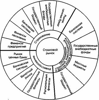 Место страхового рынка в финансовой системе обусловлено как ролью различных финансовых институтов в финансировании страховой защиты, так и их значением как объектов размещения инвестиционных ресурсов страховых организаций и обслуживания страховой, инвестиционной и других видов деятельности (рис. 1).