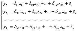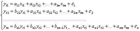 В данной системе линейных уравнений зависимая переменная одного уравнения является фактором в других уравнениях.