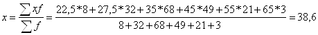 С учетом этого середины интервалов будут: 22,5 27,5 35,0 45,0 55,0 65,0