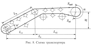 Длина горизонтальной части транспортера ……..Lr=10м