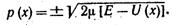 , где U(x)— потенциальная. энергия частицы (т — масса), был бы в области внутри барьера, Е<U(x), мнимой величиной. В квантовой механике благодаря неопределённостей соотношению между импульсом и координатой подбарьерное движение оказывается возможным. Волновая функция частицы в этой области экспоненциально затухает, и в квазиклассичесическом случаееё амплитуда в точке выхода из-под барьера мала.