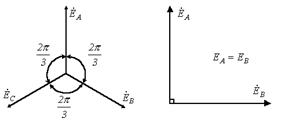 Из несимметричных систем наибольший практический интерес представляет двухфазная система с 90-градусным сдвигом фаз (см. рис. 4).