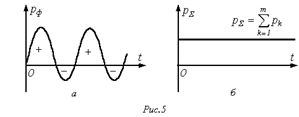 Все симметричные трех- и m-фазные (m>3) системы, а также двухфазная система являются уравновешенными. Это означает, что хотя в отдельных фазах мгновенная мощность пульсирует (см. рис. 5,а), изменяя за время одного периода не только величину, но в общем случае и знак, суммарная мгновенная мощность всех фаз остается величиной постоянной в течение всего периода синусоидальной ЭДС (см. рис. 5,б).