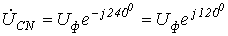 (его начальная фаза равна нулю), отсчитываем фазовые сдвиги линейных напряжений по отношению к этой оси, а их модули определяем в соответствии с (4). Так для линейных напряжений