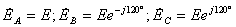 . В частности векторная диаграмма для симметричной системы ЭДС, соответствующей трехфазной системе синусоид на рис. 2, представлена на рис. 3.