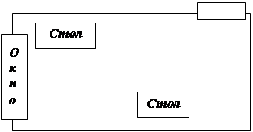 Вид с окна закрывается занавесками. Пол в помещении деревянный (паркет), не токопроводящий. Уборка помещения осуществляется один раз в день – вечером после окончания рабочего дня. Расположение рабочих мест приведено в схеме №1.