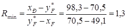 и из точки минимума на кривой определяется оптимальное рабочее флегмового число R: Rопт = 2,2 при