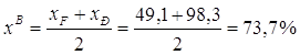 – концентрация легколетучего компонента в паре, находящегося в равновесии с исходной смесью XF(графика У–X). = 70,5 %