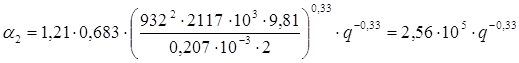 где ρ2=932 кг/м2λ2=0,683 Вт/(м ·К); μ2=0,207 ·10-3 Па·с – физико-химические характеристики конденсата воды при tконд=132,9ºС