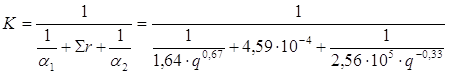 Это уравнение решается графически, задаваясь значением q. В качестве первого приближения принимается ориентировочное значение удельной тепловой нагрузки: