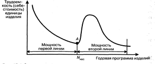 Рис. 1. Зависимость между программой и трудоемкостью изделия