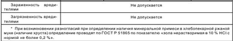 | Наличие минеральной примеси | При разжевывании муки не должно ощущаться хруста |