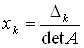 (k = 1, 2, … , ) де Dk – визначник матриці, яку можна одержати, якщо в матриці А системи k-й стовпець замінити на стовпець вільних членів.