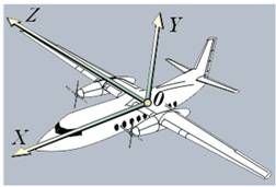 Рис.2.2 Углы рыскания, тангажа и крена самолёта