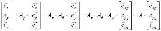- это матрица преобразований векторных величин, заданных в полусвязанной неподвижной системе координат OXgYgZg, в векторные величины в связанной системе координат OXYZ. Непосредственное вычисление матрицы A дает следующий результат