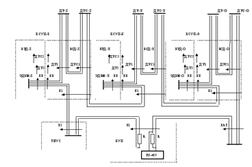 В ТИУС используется один излучатель на три волоконных контура. Использование трех УФП позволяет вести непрерывную обработку сигнала с трех каналов независимыми блоками цифровой обработки (БЦО). Каждый из БЦО формирует напряжения для получения пилообразной компенсирующей ступенчатой модуляции света для компенсации разности фаз Саньяка и для внесения постоянного фазового сдвига между встречными световыми волнами на π/2 рад, с помощью вспомогательной фазовой модуляции.