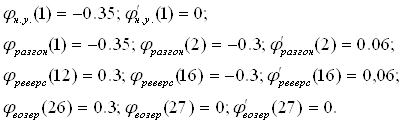 При начале сканировании должна быть уже достигнута угловая скорость, с которой производится сканирование, поэтому производные угла в конце фазы реверса и разгона должны быть равны производной угла во время сканирования, то есть 0.06.
