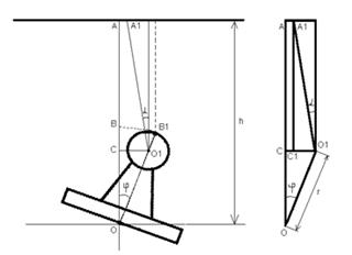 В положении 2 необходимый угол отклонения от вертикали луча О1В обозначим как α2. Угол α2 находится аналогично из величин h, r и угла φ: