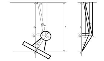 На оси, на которой установлен двигатель, имеется также датчик угла, определяющий угловое положение. Угол определяется отклонением луча О1В от вертикали.