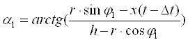 В положении 2 луч проходит через точку х = x(2∆t) необходимый угол отклонения от вертикали луча О1В обозначим как α2. Угол α2 находится аналогично из величин h, r и угла φ: