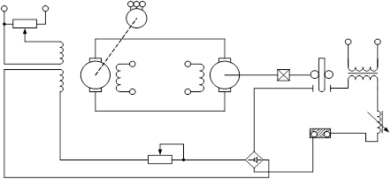 Диодный мост, на вход которого подается напряжение сварочной дуги Uд, является выпрямительным устройством. С его выхода подается напряжение на потенциометр который является корректирующим устройством. С его выхода питается индуктивная обмотка возбуждения генератора служащая для создания сигнала рассогласования. Эта катушка создает магнитный поток Ф2.